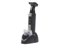 Voděodolný celotělový pánský holicí strojek s prodlouženou rukojetí je vhodný pro snadné holení na zádech, ramenou a nohou. Zastřihovač má 3 vyměnitelné nástavce (3 - 5 - 7 mm) a je dodáván s nabíjecí základnou, kartáčkem na čištění a olejem. Indikační diody pro zobrazení stavu nabíjení (červeně) a plného nabití (zeleně). Doba plného nabíjení trvá přibližně 3 hodiny a pracovní doba je přibližně 60 minut.