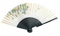 Elegantní japonský vějíř laděný do černé barvy s motivem květů a motýlů je vyrobený dle tradice z bambusového dřeva a hedvábí.