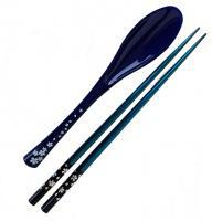 Sada Wakasanuri Blue se skládá z japonských hůlek a polévkové lžíce s motivem třešňových květů. Vše obdržíte v elegantní dárkové krabičce.