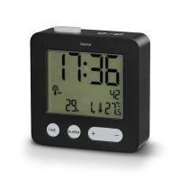 Černý budík Hama Piccolo s digitálním zobrazením času, data a teploty je řízený rádiovým signálem DCF s možností manuálního nastavení časového pásma, pokud se čas přijatý signálem DCF odlišuje od toho v časovém pásmu. Čas se zobrazuje ve formátu hodiny, minuty a sekundy. Zvonění budíku se postupně zrychluje.