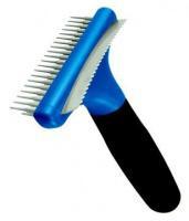 Kvalitní trimovací hřeben s pogumovanou rukojetí pro snadný úchop, s devíti ocelovými nerez zuby délky 4 cm, a celkovou délkou 16 cm.