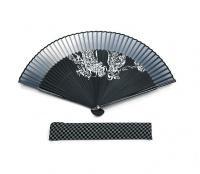 Půvabný originální japonský vějíř v černé barvě s motivem stříbrného draka. Luxusní vzhled, vyrobený dle tradice z bambusového dřeva a hedvábí. Součástí balení je i kárované pouzdro na vějíř.