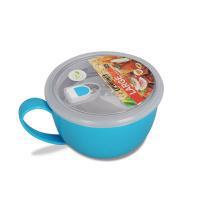 Veselá přepravka na jídlo, v podobě hrnku, s velkým uchem, o objemu 1,1 litru. Jídlonosič - hrnková miska - je uzavíratelný pro přenášení, vnější část je plastová, vnitřní z nerezové oceli - vyrobeno z nerezové oceli a netoxického a bezpečného polypropylenu. Víčko je transparentní, 100% těsní pro snadný transport a je opatřeno ventilem pro vyrovnání tlaku. Barva jídlonosiče modrá.