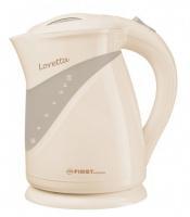 Rychlovarná konvice First Austria FA 5401-2 v béžové barvě, která je vhodná pro leváky i praváky. Konvice má obsah 2 litry. Na spodní části konvice jsou protiskluzové zábrany. Je 360° otočná, na podstavci. Je vybavena skrytou spirálou s ochranou proti zavápnění, plastovým krytem, filtrem v hubici, tlačítkem na otevírání víka, automatickým vypnutím a bezpečnostním termostatem. Disponuje vnitřním osvětlením, které při provozu svítí.