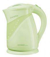 Rychlovarná konvice First Austria FA 5401-2 v hráškově zelené barvě, která je vhodná pro leváky i praváky. Konvice má obsah 2 litry. Na spodní části konvice jsou protiskluzové zábrany. Je 360° otočná, na podstavci. Je vybavena skrytou spirálou s ochranou proti zavápnění, plastovým krytem, filtrem v hubici, tlačítkem na otevírání víka, automatickým vypnutím a bezpečnostním termostatem. Disponuje vnitřním osvětlením, které při provozu svítí.