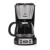 Elegantní kávovar Tristar CM 1248 v provedení z černého plastu s nerezovými doplňky je velmi praktický, nejen ranní, pomocník. Díky velkému objemu o 1,5 litru je možné připravit 12-15 šálků kávy najednou. Disponuje digitálním podsvíceným displejem, pomocí kterého je možné nastavit časovač. Je vybaven funkcí drip-stop pro bezpečné vyjmutí konvice beze strachu z nepěkných kapek, on/off přepínačem, světelnou kontrolkou provozu, ukazatelem hladiny vody a vyjímatelným držákem na filtr, který se výborně čistí. Automatické vypnutí pro šetření energií je samozřejmostí. Papírové filtry tedy nejsou potřeba. Díky příkonu 900W je možné ho využívat i pro kempování.