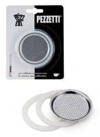 Sada těsnění pro nerezové moka konvice o velikosti 6 šálků. Balení obsahuje 3 ks těsnění a 1 ks sítka.