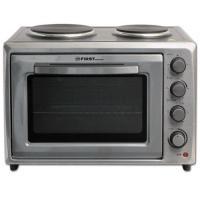S kompaktní malou troubou FA-5045-2 značky First Austria o objemu 38 litrů si lehce připravíte skvělou večeři, pizzu i lahodný dort. Disponuje 2 nerezovými topnými tělesy a časovačem do 60 minut se zvukovým signálem, který vás na konec pečení či vaření upozorní. Teplotu trouby je možné pomocí plynule nastavitelného termostatu nastavit od 100 °C do 250 °C a samozřejmostí je volba mezi horním nebo/a dolním pečením. Trouba First Austria FA-5045-2 nabízí horkovzdušnou funkci, funkci grilování, rožnění a možnost vaření a pečení současně. Velkou výhodou jsou 2 ploténky o průměru 188 mm a 155 mm. Dvířka jsou vyrobené z dvojitého skla a nahřátí trvá pouhých 10 minut. Vybavena je indikátorem aktivního provozu, který se zapne v případě, že nastavíte časovač. Do té doby se trouba nespustí a indikátor se nezapne. Součástí balení je navíc grilovací rošt, jehla na rožnění a pečící plech, takže péci a grilovat můžete hned. Pro snadné vyjmutí horkého plechu z trouby je dodáváno madlo.