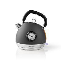 Rychlovarná konvice Nedis KAWK530EGY 1,8L je v šedém provedení. Díky bezdrátové a otočné základně se s konvicí skvěle manipuluje. Obsahuje teploměr, díky kterému budete hned vědět jakou máte teplotu vody. S extra velkým objemem 1,8 litru připravíte veškerou vodu, kterou potřebujete na zalití kávy, čaje, těstovin nebo instantních nudlí. Konvice je navíc vybavena základnou o 360º. Obsahuje skryté topné těleso, díky kterému voda rychle dosahuje varu a také vyjímatelný filtr proti vodnímu kameni.