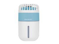 Stolní mini ventilátor Beper P206VEN410 se zvlhčovačem vzduchu se stane vaším bezvadným pomocníkem v parném horku. Po nabití baterie, které trvá 3 hodiny, vydrží v provozu až 5 hodin. Ventilátor má 3 volitelné rychlosti, 2 možnosti nastavení rozprašovače, nastavitelný úhel náklonu a LED kontrolku. Nabíjí se pomocí USB kabelu. Jeho rozměry jsou 9 x 9 x 16 cm a váha 0,40 kg.