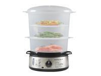 Elektrický parní hrnec BEPER BC250 se základnou z nerezové oceli a 3 plastovými průhlednými nádobami BPA FREE o celkovém objemu 9 litrů je vhodný pro zdravou přípravu mnoha druhů potravin - zeleniny, ryb, masa, luštěnin - bez ztráty přirozené chuti a vitaminů. Parní vařič je vybaven kontrolkou provozu, automatickým vypnutím v případě vyvaření vody a časovačem, který lze nastavit až na 60 minut. Nádrž na vodu o objemu 1 litr zahrnuje systém, který umožňuje doplnění vody i během vaření. Součástí příslušenství je nádoba pro přípravu rýže. Nádoby hrnce jsou stohovatelné pro úsporu místa při skladování. Parní vařič o výkonu 800 W je obzvláště vhodný pro přípravu dietních pokrmů.