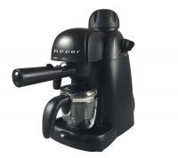 Espresso kávovar BEPER BC002 s tryskou na horkou páru. Skleněná konvice o objemu 240 ml. Filtr na 2 nebo 4 šálky kávy. Tlak 3,5 bar. Výkon 800 W.