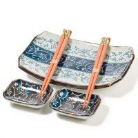 Japonský keramický sushi set Ginsai s květinkovým vzorem se skládá ze dvou talířů, 2 misek na omáčku a 2 párů jídelních hůlek. Dodáváme v elegantní dárkové krabičce.