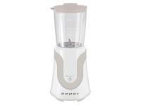 Smoothie mixér 2v1 BEPER BP600 má odměrkovou nádobu vyrobenou z tritanu a jeho výkon je 300 W. Díky šroubovací základně s čepelí z nerezové oceli lze z nádoby snadno udělat lahev, kterou si můžete vzít kamkoli s sebou, pouze na lahev našroubujete víko s praktickým držákem. Mixér váží 1,2 kg, jeho rozměry jsou 12,5 x 12,5 x 38 cm a disponuje nádobou o objemu 600 ml.