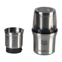 Mlýnek na kávu a drtič/kráječ potravin First Austria FA 5486, 2 v jednom. Praktický jednoduchý výrobek vhodný díky své multifunkčnosti do menších prostor. Pouzdro z nerezové oceli, kapacita 70g zrnkové kávy a snímatelné nádobky - kvalitní kuchyňský pomocník.
