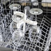 Držák skleniček na víno pro všechny běžné druhy myček nádobí zabraňuje převrácení a rozbití sklenic jedné o druhou nebo o jiné nádobí během mytí. Držák vyrobený z plastu je určen pro 4 sklenice na víno.