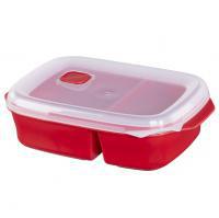 Xavax krabička s víčkem o objemu 1300 ml k ohřívání jídla v mikrovlnné troubě, zamrazení nebo skladování potravin. Dóza je rozdělena na dvě části, praktické např. při skladování omáčky a přílohy. Nádoba je vyrobena z plastu bez obsahu BPA a je tepelně odolná -20°C až +120°C, vhodná k mytí v myčce na nádobí.