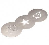 Dekorační šablony Xavax pro stylové zdobení cappuccina, espresa, latte macchiato ale i dortů nebo zákusků. Pro vysypání obrázků se skvěle hodí kakao, skořice nebo strouhaná čokoláda. Šablona je vyrobena z ušlechtilé nerezové oceli a na výběr jsou tři různé motivy - srdce, hvězda a květina. Šablonu lze mýt v myčce nádobí.