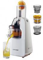 S oblíbeným šnekovým odšťavňovačem Concept LO7065 SINFONIA 3 v 1 snadno připravíte čerstvou šťávu, smoothie i studený dezert. XXL plnicí otvor (7,5 cm) umožňuje odšťavňovat i velké kusy ovoce a zeleniny bez nutnosti předchozího krájení nebo dělení. Díky dvoufázovému procesu odšťavňování získáte maximum šťávy a minimum odpadu. Součástí odšťavňovače Concept LO7065 jsou tři praktická sítka na lisování čerstvých šťáv, přípravu smoothie či výrobu domácí zmrzliny. Dopřejte si 100% šťáva plnou vitamínů a živin.