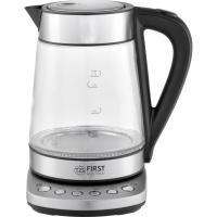 Rychlovarná konvice First Austria, s nastavitelnou teplotou. Teplotu je možno nastavit v na 40/70/90/100 °C, tudíž je vhodná pro milovníky čaje. Konvice je skleněná, s odměrkou, perfektního designu s černými doplňky a nerezovými akcenty. Konvička je vhodná pro leváky i praváky, 360° otočná. Je vybavena vnitřním osvětlením, skrytou topnou spirálou, filtrem v hubici a pojistkou proti přehřátí. Disponuje příkonem 1850 - 2200W.