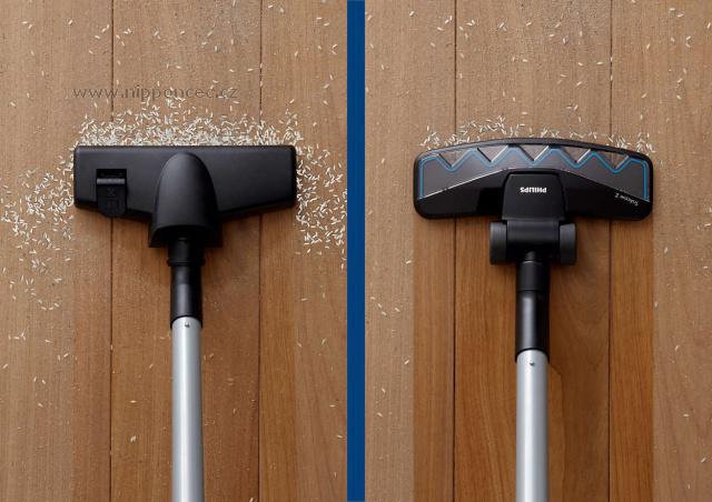 Inovace Philips zajistí rychlé vysátí nečistoty jedním tahem.