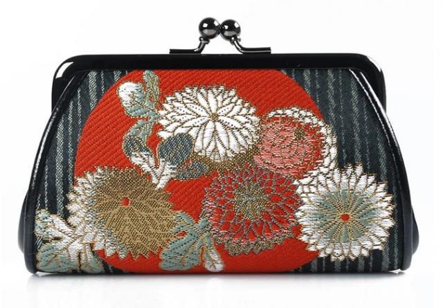Ve fialové barvě, s motivem švestkových květů a květů Sakury . Menší dámská peněženka, která může stejně tak dobře posloužit i jako malá dámská taštička do kabelky na drobnosti. Působí velmi elegantně. Ve vnitřní části má další, skrytou přihrádku buď na mince nebo na rtěnku či podobné malé nezbytnosti každé ženy.