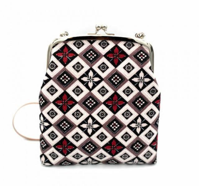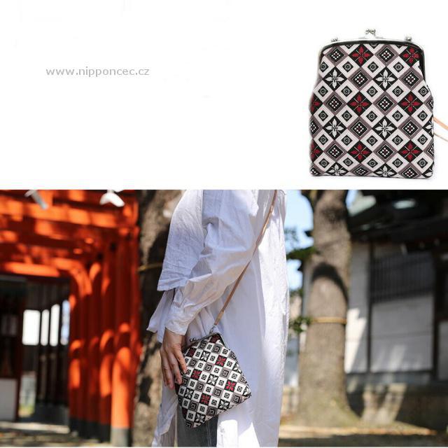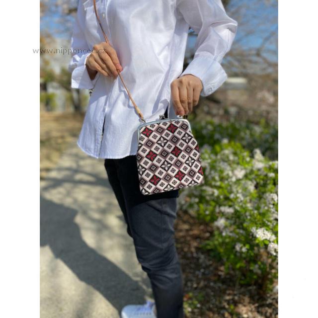 Originální japonská taštička na drobnosti, kterou lze nosit přes rameno nebo ji po odepnutí popruhu vložit jako "tašku v tašce" do kabelky, díky tomu máte vždy důležité věci na jednom místě, aniž by jste museli přendavat věci z jedné kabelky do druhé. Krásný vzor kabelky je inspirován stromem Cykasu japonského, který je již od dávných dob oblíbeným motivem k dekorování kimona. Kabelka pochází z kolekce Wabisuke a je ručně vyrobena v dílně Kataoka v Kjóte.
