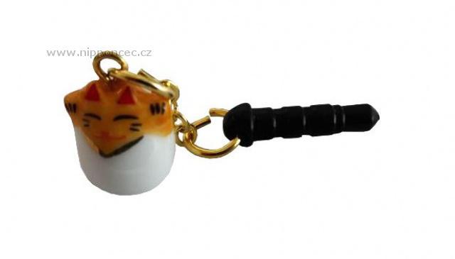 Japonská kočka štěstí Maneki Neko mini, přívěsek na mobil