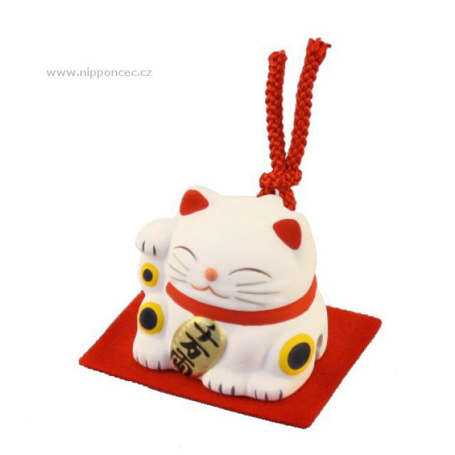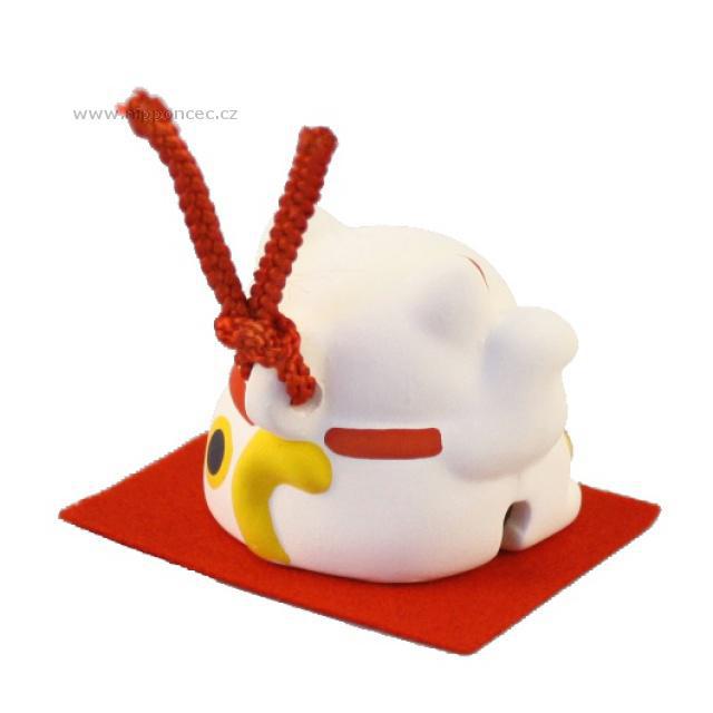 Japonská kočka štěstí Maneki Neko White - zvonek 6cm