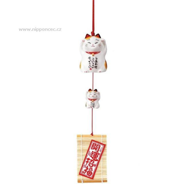 Japonská kočka štěstí Maneki Neko Zvonkohra Fuusen