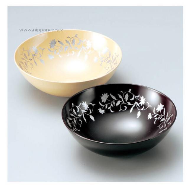 Souprava dvou japonských misek stříbrně zdobených je ideální jako svatební dar nebo dárek k narozeninám. Misky jsou lakované tradičním lakem Uruši, který je známý svými antibakteriálními účinky a miskám dodává jedinečný vzhled.