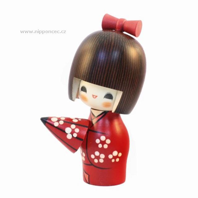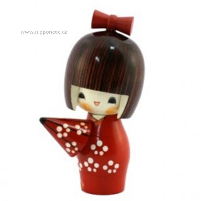 Elegantní japonská panenka Kokeshi Amayadori (schovávající se před deštěm) má krásné červené kimono zdobené jemnými malovanými květy, které ladí s jejím složeným deštníkem. Červená mašle ve vlasech dodává panence roztomilý a hravý vzhled, zatímco její milá tvář vyvolá úsměv na tváři dětem i dospělým. Tato panenka je skvělým dárkem pro milovníky Japonska, tradičního umění a sběratele kokeshi panenek.