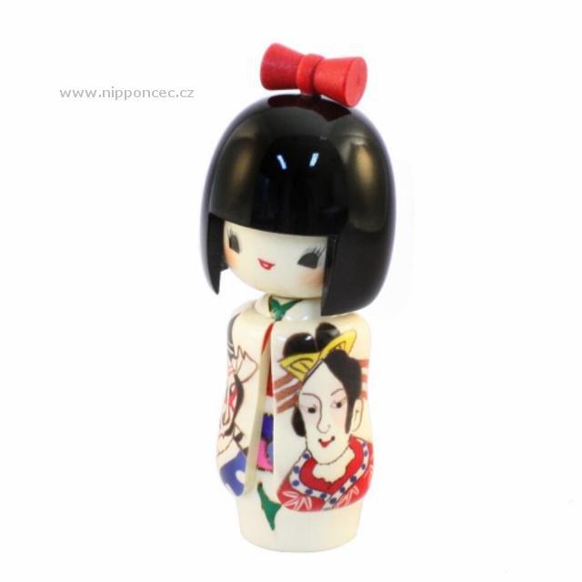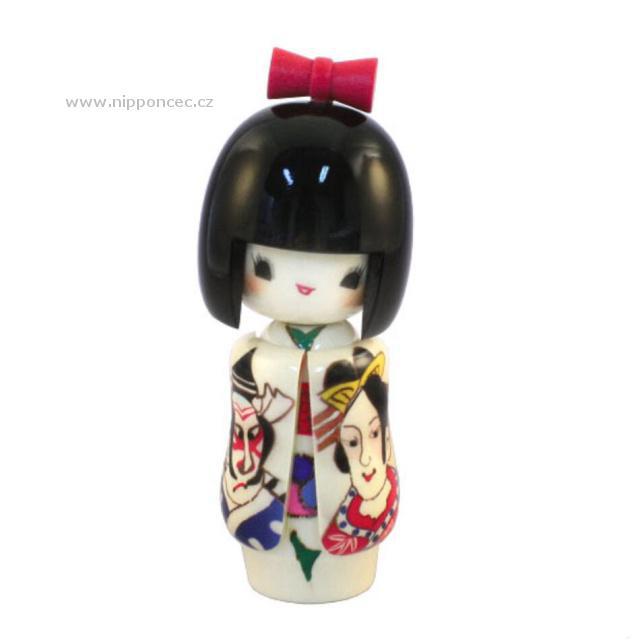 Japonská panenka Kokeshi Kabuki pochází z dílny mistra Masayoshi Yamagishi. Panenka má typický účes mladých děvčat a její kimono zdobí oblíbené postavy tradičního japonského divadelního žánru kabuki. Vynikající dárek, jako výraz lásky či přátelství pro vaše blízké.