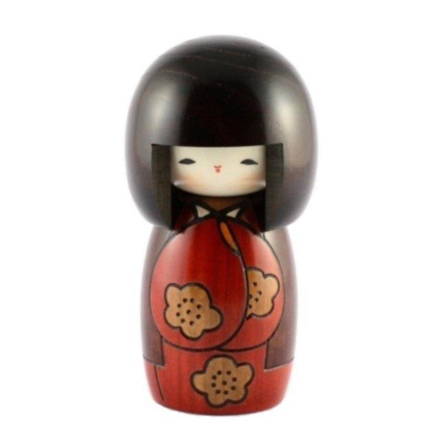 Japonská panenka Kokeshi Koujitsu (krásný den) pochází z dílny mistra Usabura. Holčička v červeném kabátku haori stojí v malé zahradě pod rozkvetlou švestkou a ve vlasech ji tančí první sluneční paprsky, ve vzduchu je cítit příslib jara.