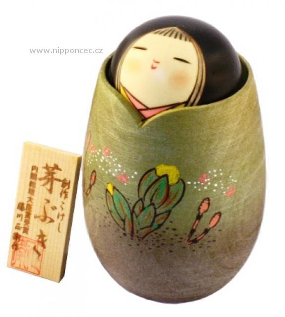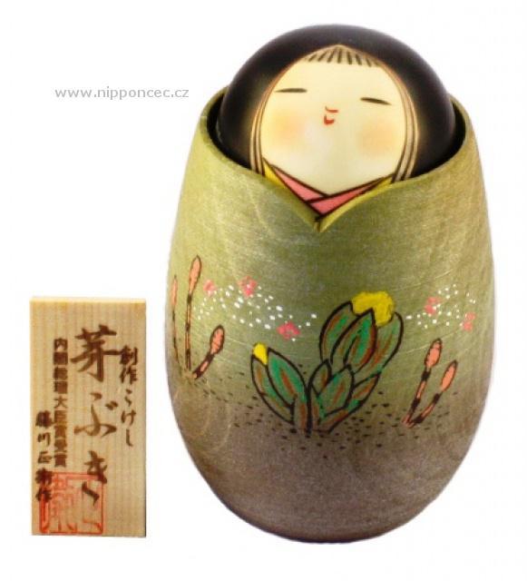 Japonská panenka Kokeshi Mebuki Klíčící na jaře 14 cm