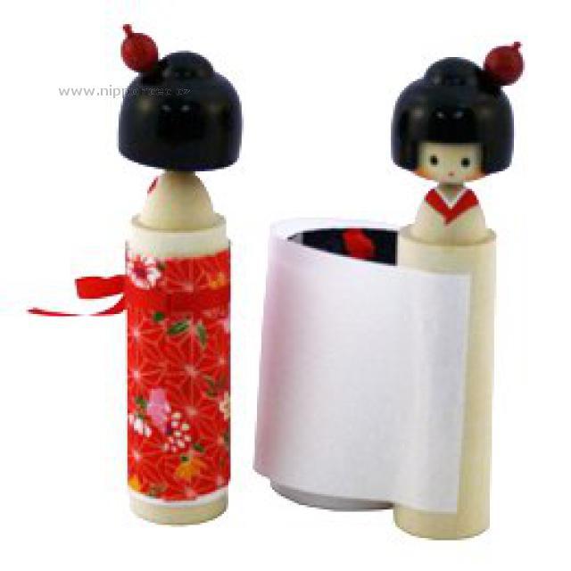 Kokeši panenka - nápadítá - Message Doll - nabízí možnost spojit nápadit dárek - projev lásky a přátelství pro vaše blízké - s tajným věnováním, které napíšte na papírové "kimono" upevněné na těle paněnky a převázané červenou stužkou. Rozměry panenky: 3x3x15 cm, barevné provedení červené, dřevo, vyrobeno v Japonsku.