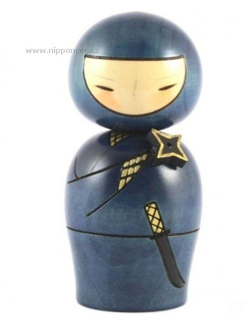 Kokeši panenka Ninja je vysoká 12,5 cm a je vyrobena ze dřeva Mizuki - dřín. Pochází z dílny tvůrce kreativních kokeshi panenek Usuburo. Jistě jste se již někdy se slovem Ninja setkali. Jedná se o tajného agenta feudálního Japonska, který byl zpopularizován za pomoci Anime a Mangy.. Ninja je zahalený v modrém kimonu a jsou vidět pouze jeho roztomilé oči - vždyť je právě v utajení. Za opaskem má schovaný tradiční japonský meč.
