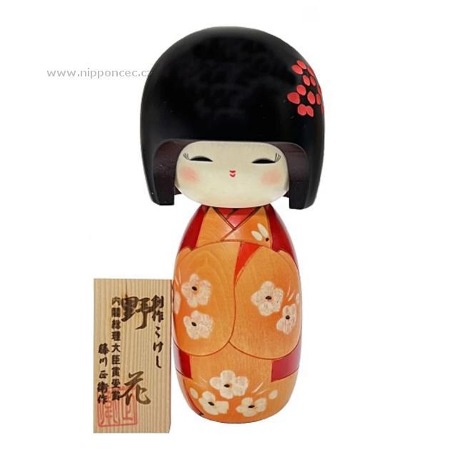 Elegantní panenka Kokeshi Nobana pochází z dílny mistra Fujikawu, oceněného prestižní Cenou předsedy vlády. Její elegantní oranžové kimono doplňuje tradiční červený kabátek bez rukávů, známý jako "chanchanko", který dodává panence jemný a roztomilý vzhled. Nobana znamená „divoká květina", symbolizuje krásu přírody.