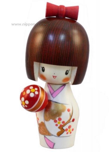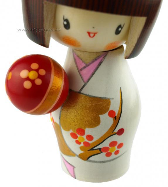 Kokeši panenka Temari je vysoká 14 cm. Pochází z dílny mistra řezbáře Tsuneaki. Tato Kokeshi má na sobě světlé kimono, zdobené zlatými obláčky a červenými květinami, a hraje si s červeným míčkem "temari" - což je tradiční japonská hračka pro dívky, vyrobená z příze. Panenka je vyrobená ze dřeva.