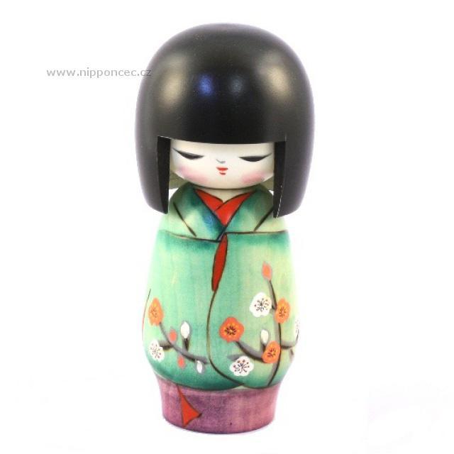 Kokeshi panenka Umematsuri je vysoká 15 cm. Kráska v zeleném kimonu s drobnými kvítky je elegantní a zároveň jemná. Vynikající dárek jako projev lásky či přátelství pro vaše blízké. Vyrobená ze dřeva mizuki - dřín.