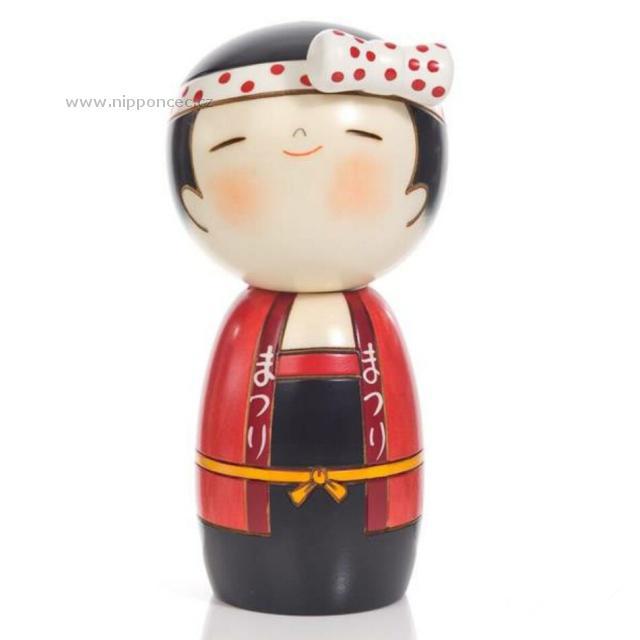 Japonská panenka Kokeshi Wassyoi představuje šťastnou dívku oblečenou do tradičního kabátu happi, který mladí lidé nosí během japonských festivalů.