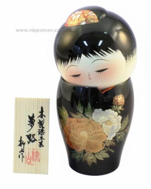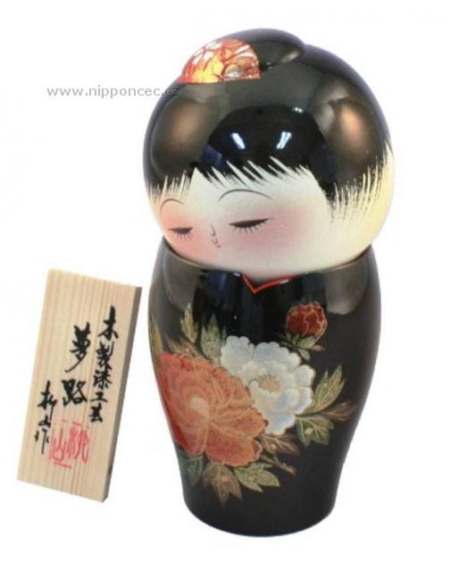 Kokeši panenka Yumeji je vysoká 15,5 cm. Její jméno v překladu znamená "Cesta do říše snů". Tato Kokeshi má na sobě černé kimono, zdobené velkými kvítky - vyrobená je ze dřeva Balení obsahuje i dřevěnou tabulku se jménem řezbáře a razítkem umělecké dílny, kde byla vyrobena. Povrch - lak Urushi.