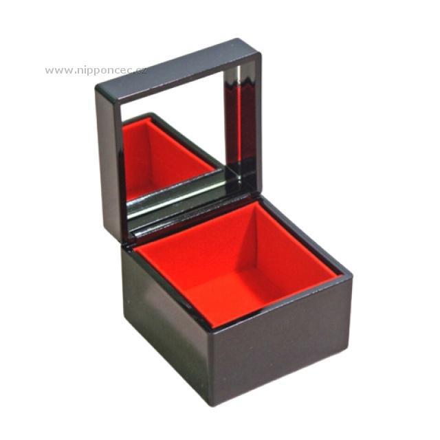 Malá šperkovnice o velikosti výšky 6,5 cm, šíře 8,5 cm, hloubka 8,5 cm. Uzavírací, z vnitřní strany víka je umístěno zrcátko. Vnitřní část je vystlaná karmínově červeným měkkoučkým sametem pro bezpečí vašich šperků. Lakovaný povrch s vysokým leskem s pěkným jemným motivem květů Sakury. Praktický a elegantní doplněk, který svou krásou potěší každou ženu.