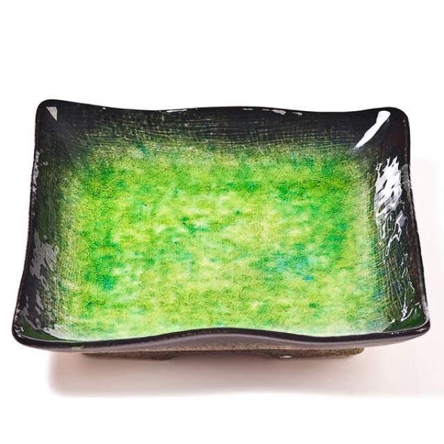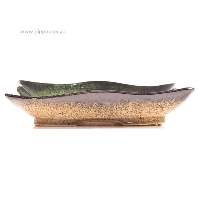 Keramická keramická miska Midori se skleněnou praskanou glazurou v designovém provedení v odstínech černé a zelené barvy. Ideální na podávání sushi s tradicí.