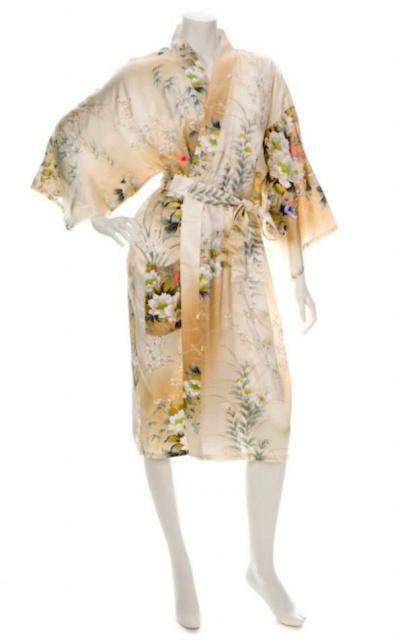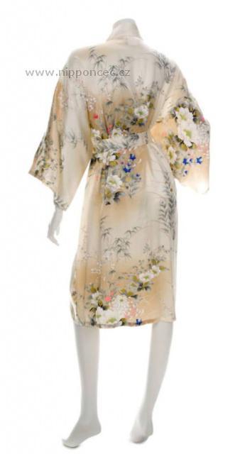 Japonské dámské hedvábné kimono Hana Silk Creme krátké