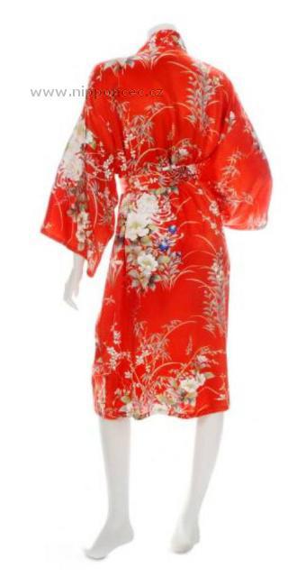 Elegantní dámské kimono je vyrobeno ze 100% hedvábí. Díky tomuto hebkému materiálu je neuvěřitelně příjemné na dotek. Kimono v červéné barvě je zdobeno bílými květy a bylo navrhnuto i vyrobeno v japonském městě Kjóto. Délka kimona je 107 cm a je vhodné pro EU velikost 36 až 42.