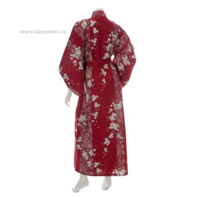 Udělejte s tímto elegantním, dámským županem radost! Svůdný župan ve stylu kimona je vyroben ze 100% bavlny a proto je díky tomuto hebkému materiálu neuvěřitelně příjemný na dotek. Župan jukata je vyrobený přímo v Kjóto a je dodáván s odpovídajícím 4 cm širokým pásem. Yukata je dlouhá 140 cm. Jemnost yukaty je vyvážena dravostí červené s květy sakury.