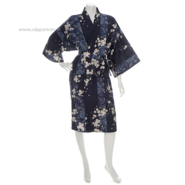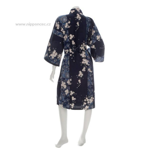 Udělejte s tímto elegantním, dámským županem radost! Svůdný župan ve stylu kimona je vyroben ze 100% bavlny a proto je díky tomuto hebkému materiálu neuvěřitelně příjemný na dotek. Župan yukata je vyrobený v Japonsku a je dodáván s odpovídajícím 4 cm širokým pásem. Elegantní tmavě modrá, na které se krásně vyjímají jemné bílé květy, padne každé ženě.