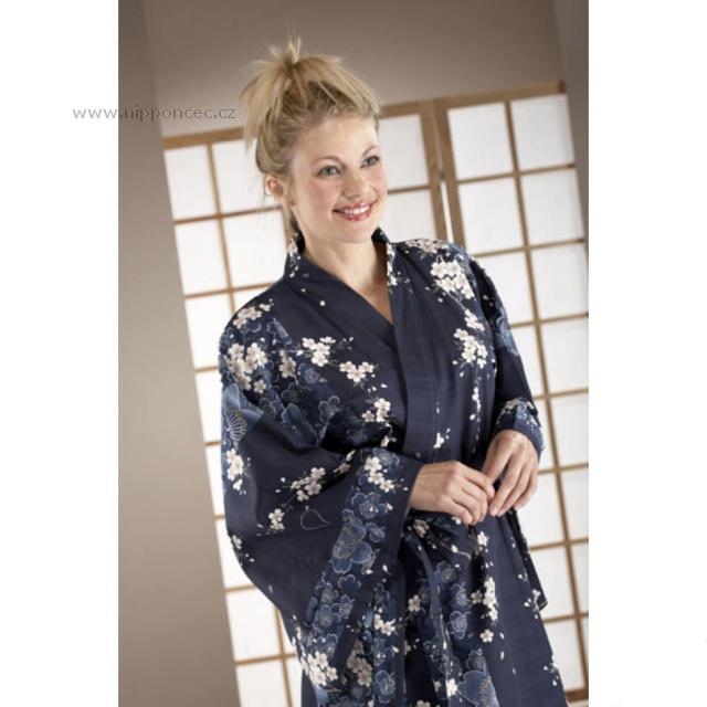 Japonské dámské kimono Yukata Sakura BLUE krátké