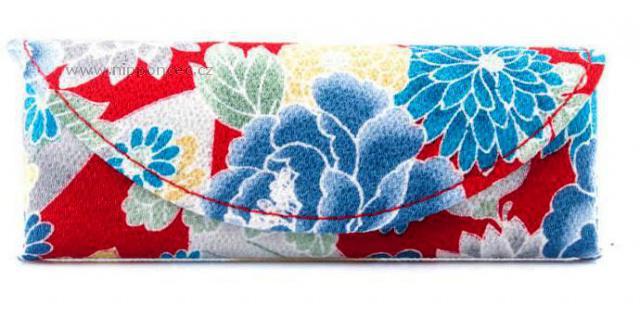 Dámské pouzdro na brýle je široké 16 cm. Pouzdro je potažené kimono látkou pestrého vzoru, s magnetickým uzávěrem. Vnitřní část je černá - sametově měkká, a vytvarovaná tak, aby bylo zabráněno nechtěnému posunutí brýlí v pouzdře. Praktický a elegantní doplněk, který svou krásou a příjemným dotykem potěší každou ženu.
